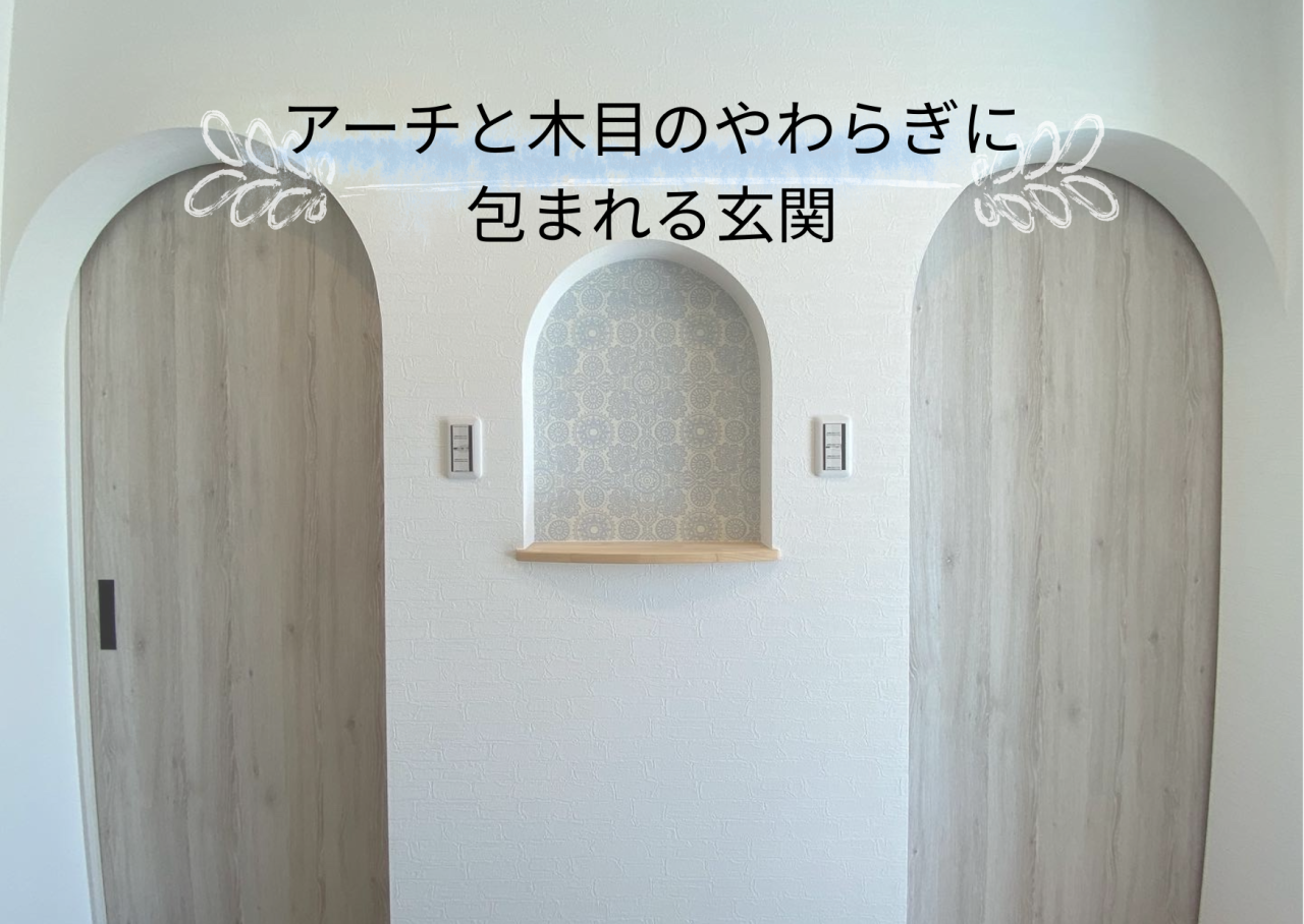 【一宮市 注文住宅】アーチと木目のやわらぎに包まれる玄関