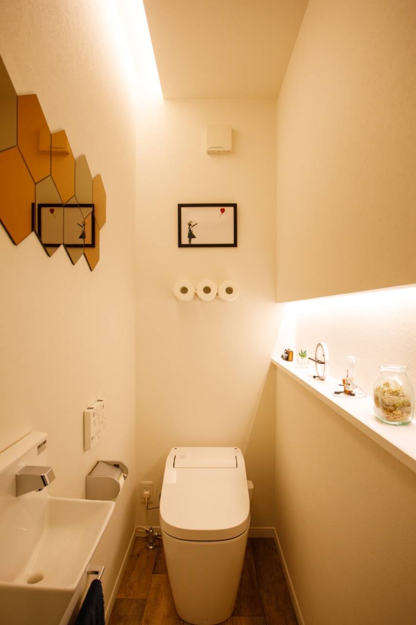 【一宮市 工務店】小物×間接照明で叶えるおしゃれなトイレ