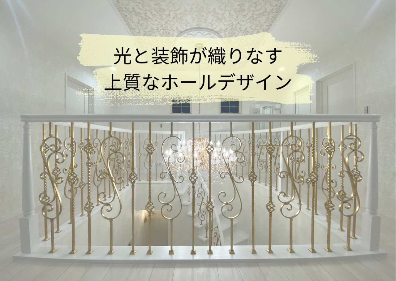 【一宮市 工務店】光と装飾が織りなす上質なホールデザイン