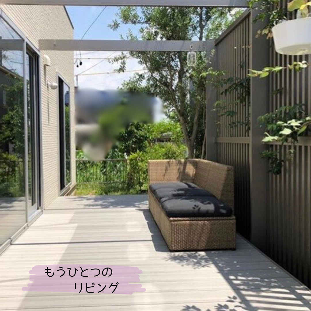 リビングの延長線上にウッドデッキを設け、