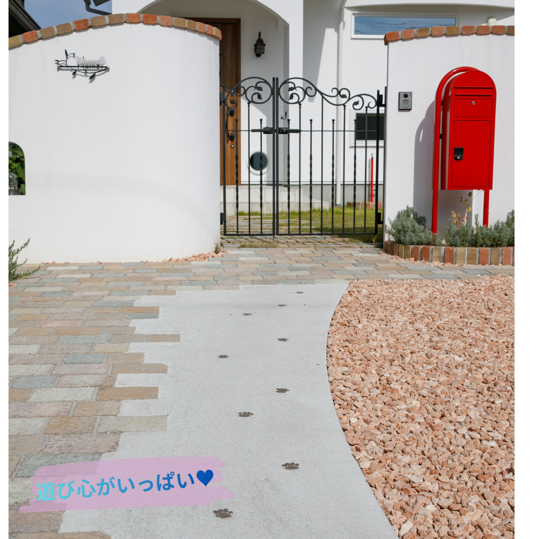 玄関へと続くアプローチに小さな「肉球の足あと」