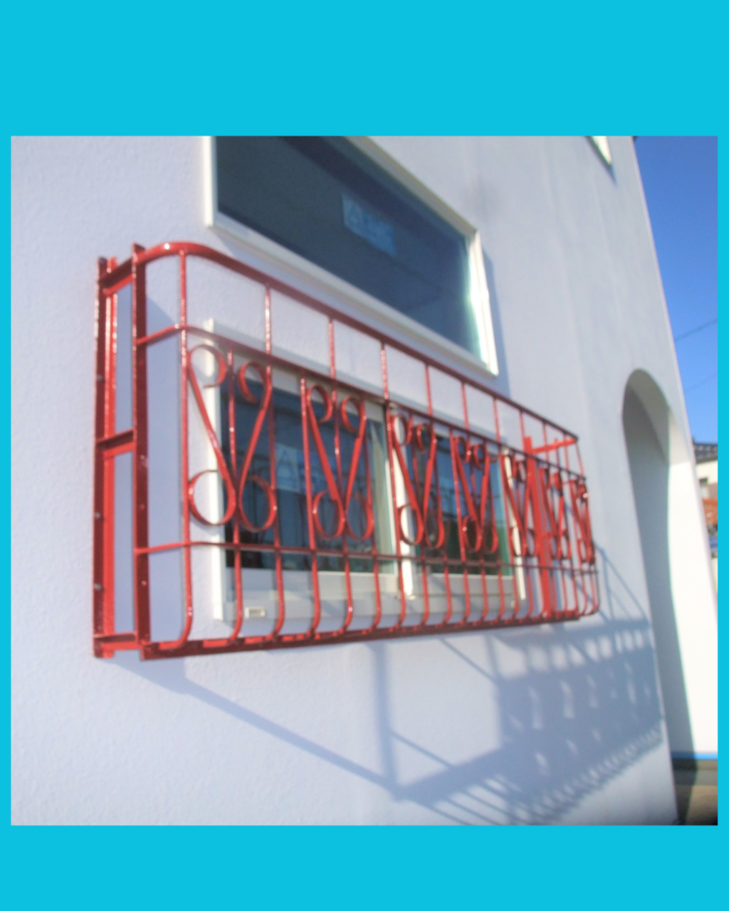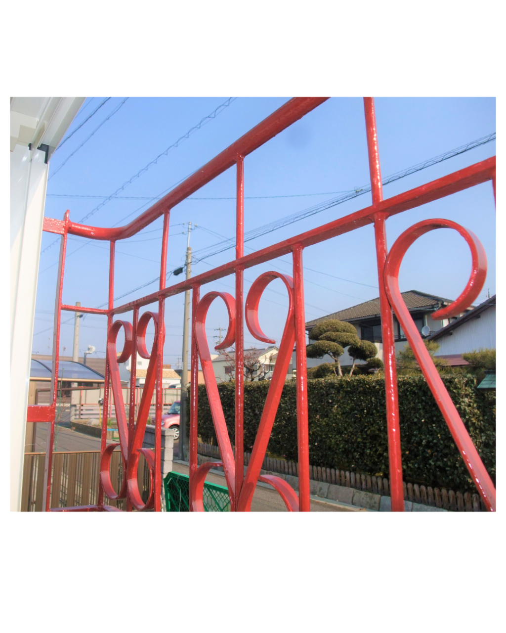 白い壁と赤いアイアン