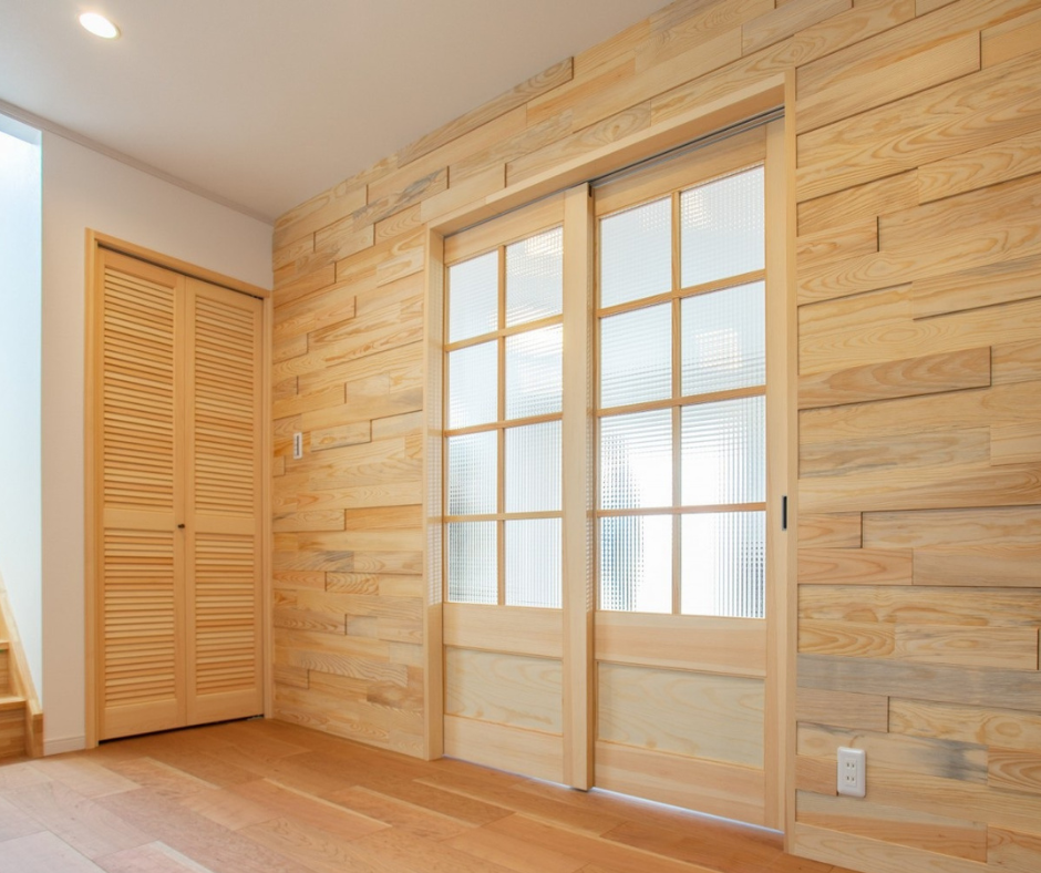 【一宮市】【工務店】天然木の温もりを感じるリビング入口のデザイン